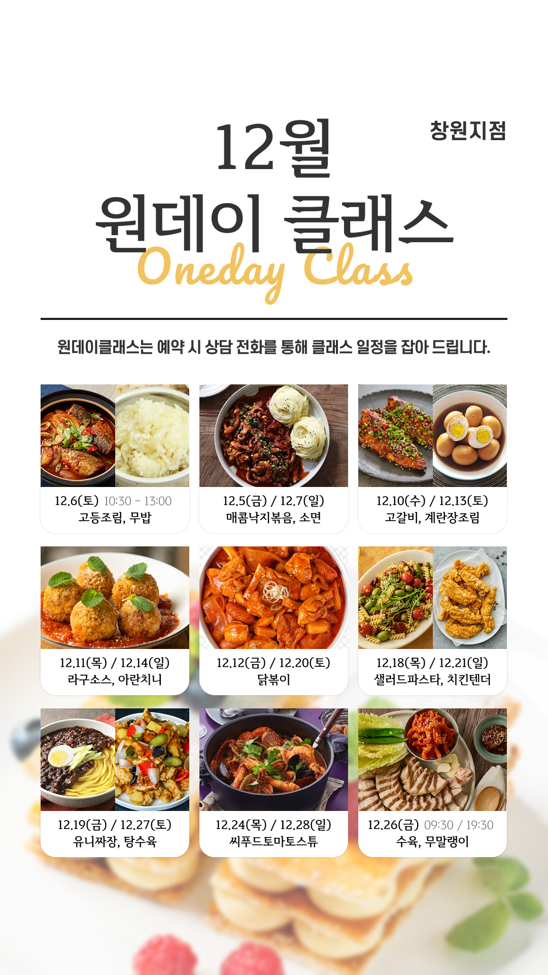 12월 지점별 원데이 클래스